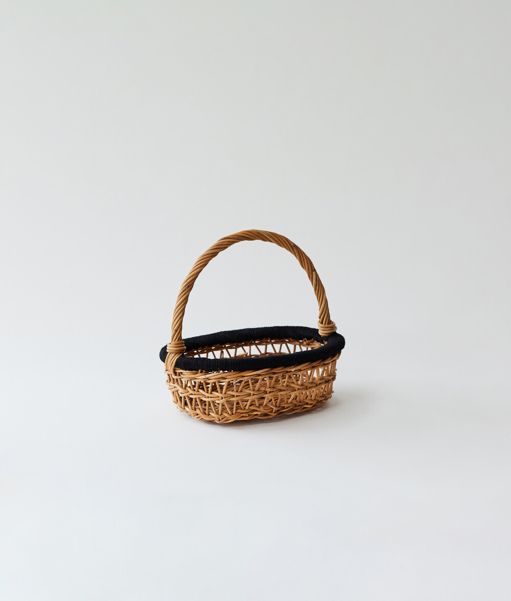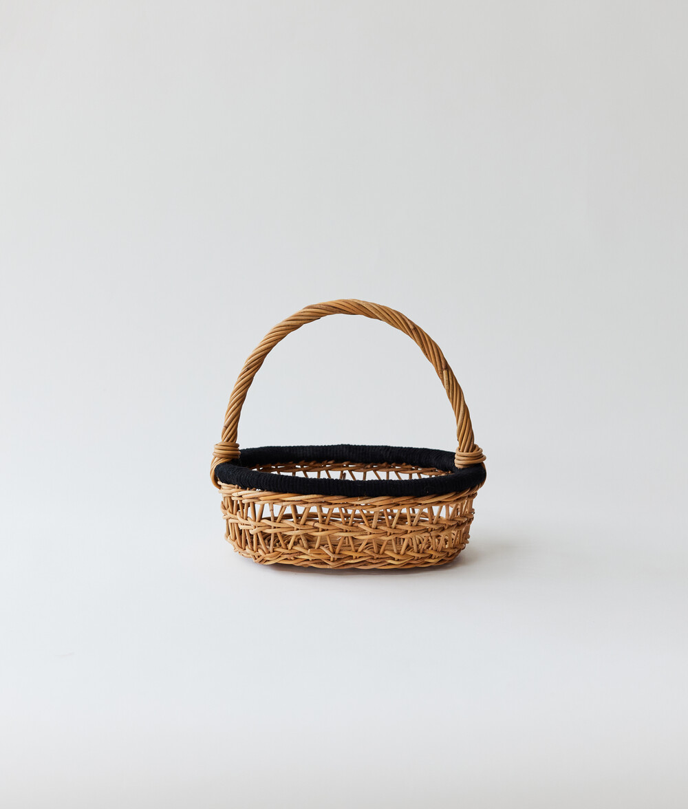 H : 일반 라탄은 한 시간 정도 불리면 금방 낭창낭창해지는 반면 홍등은 최소 하루 이상 불려야 해요. 그 시간을 거친다고 해서 다루기 쉬워지는 것도 아니고, 굵기나 강도, 탄성이 불규칙해 다루기 쉽지 않아요. 홍등 바구니에 포에지의 감성을 한 스푼 담고 싶었는데 검은 코튼이 답이 되어주었어요. 자유로운 위빙을 바탕으로 두고 작업 사이사이에 검은 면을 가장자리와 손잡이에 감아 우아한 디테일을 더한 거죠. 평소 작업하는 바구니에 비해 몇 배의 공과 작업 시간을 필요로 하는 만큼 소유할 가치가 충분하단 생각이 듭니다.