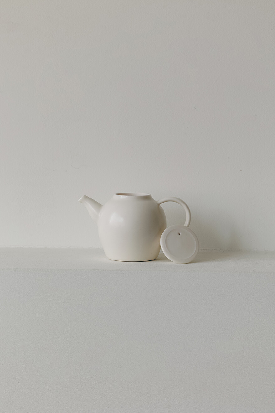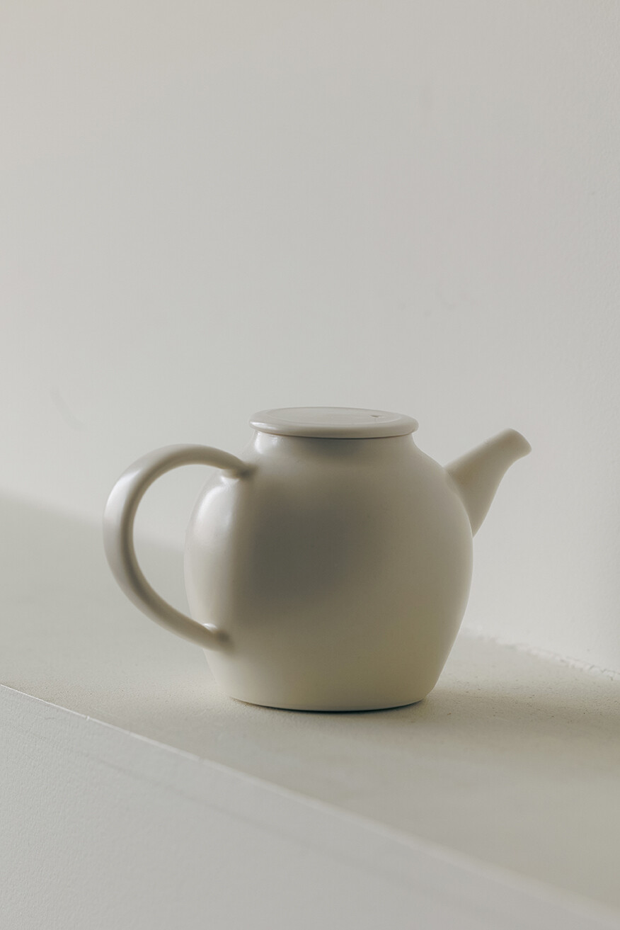 하얗고 작은 새와 둥지를 모티브로 빚은 세라믹 티웨어 세트를 소개합니다. 손세은 작가는 입자가 고운 백자 소지를 이용해 물레 성형 기법으로 다기를 제작합니다. 이번에는 포에지를 찾을 손님들을 떠올리며 크림색 다관과 플레이트, 잔을 만들었습니다. 다관은 물대 안쪽에서 찻잎을 걸러냅니다. 우유거품처럼 따스한 크림빛, 모난 곳 없이 부드러운 실루엣이 조화된 작품들로 마주 앉은 귀한 손님에게 포근한 환대의 마음을 내밀어보세요. 백자 정통의 아름다움을 지닌 티 세트는 고요한 공간에 놓아두는 것만으로 평온을 선물합니다.