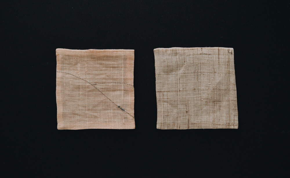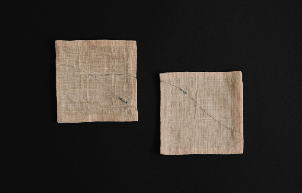 H : 바라만 보고 있어도 마음이 고요해지는 호숫가의 정경, 담백한 형태로 드러나는 물결의 선이 떠올랐어요. 천연섬유인 모시와 삼베를 소재로 홈질, 감침질, 기법을 이용해 작은 선물들을 만들었습니다.