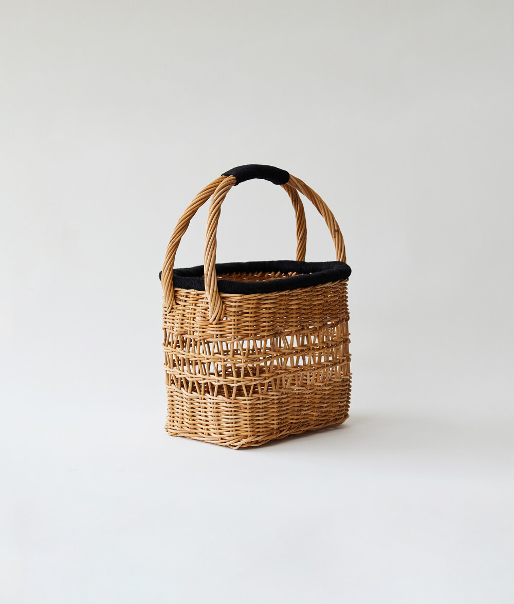 H : 일반 라탄은 한 시간 정도 불리면 금방 낭창낭창해지는 반면 홍등은 최소 하루 이상 불려야 해요. 그 시간을 거친다고 해서 다루기 쉬워지는 것도 아니고, 굵기나 강도, 탄성이 불규칙해 다루기 쉽지 않아요. 홍등 바구니에 포에지의 감성을 한 스푼 담고 싶었는데 검은 코튼이 답이 되어주었어요. 자유로운 위빙을 바탕으로 두고 작업 사이사이에 검은 면을 가장자리와 손잡이에 감아 우아한 디테일을 더한 거죠. 평소 작업하는 바구니에 비해 몇 배의 공과 작업 시간을 필요로 하는 만큼 소유할 가치가 충분하단 생각이 듭니다.