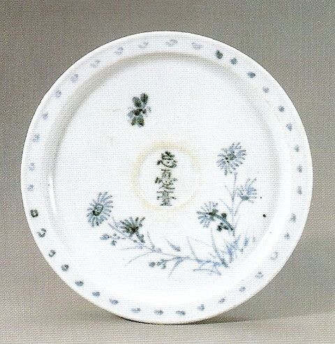 ·보물 1057호로 지정된 청화 망우대 잔받침. 받침 위에 올려져 있는 잔을 드는 순간 망우대라는 글자가 나타난다.