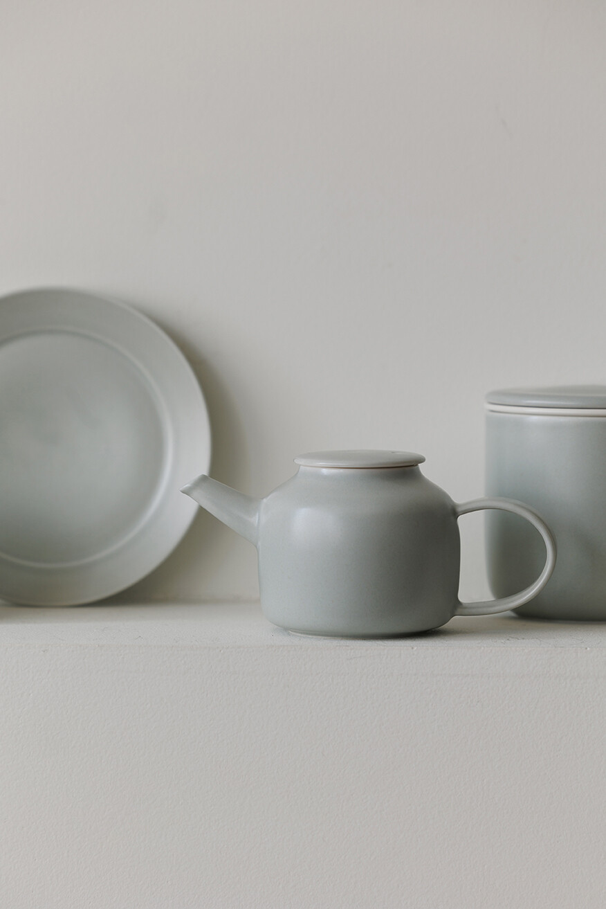 투명한 물빛과 단아한 선으로 이루어진 호수 티웨어 세트를 소개합니다. 손세은 작가는 입자가 고운 백자 소지를 이용해 물레 성형 기법으로 다기를 제작합니다. 작가가 잔잔하게 일렁이는 호수와 포에지를 떠올리며 만든 선물은 엷은 푸른 빛의 다기-다관과 플레이트, 찻잔, 티 머그, 합입니다. 움직이지 않는 것처럼 보이지만 부드러운 달빛을 머금고 미동하는 호수. 파도의 격동, 물방울의 반짝임처럼 눈에 띄지는 않지만 호수의 차분한 물빛과 유약한 음률은 우리에게 평정심을 줍니다. 작고 단정한 합에는 찻잎이나 다식을 담아보세요. 호숫가를 산책하는 기분으로 다정한 친구와 그 평화로움을 나누세요.