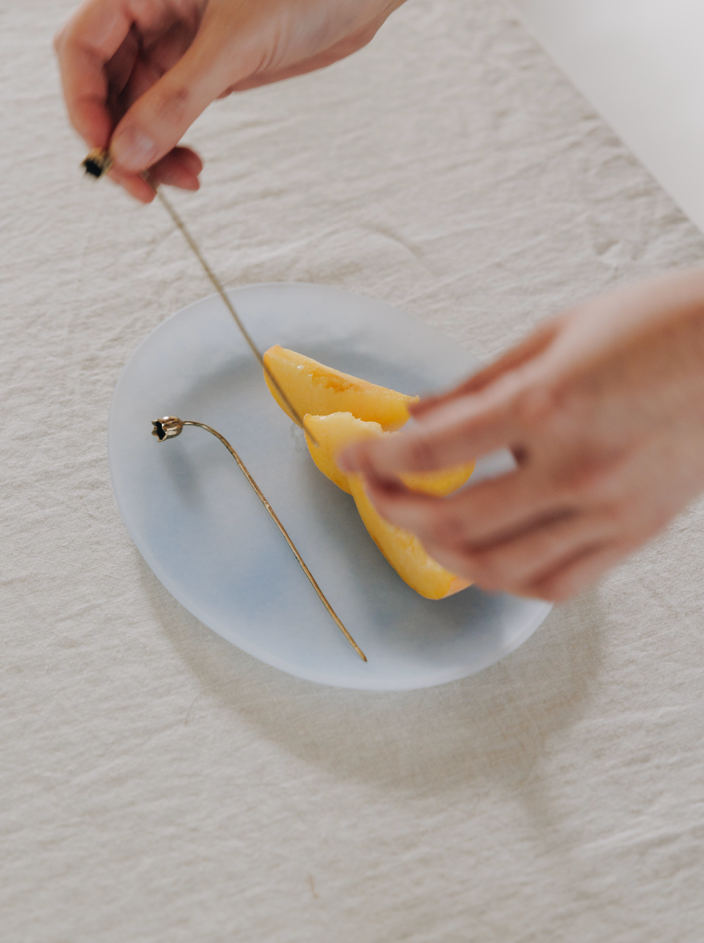 · 과일과 디저트를 낼 때 은방울꽃 황동 픽을 곁들여보세요. 간소하게 차린 찻상도 오래 기억될 만큼 귀한 찻자리로 만들어줍니다.