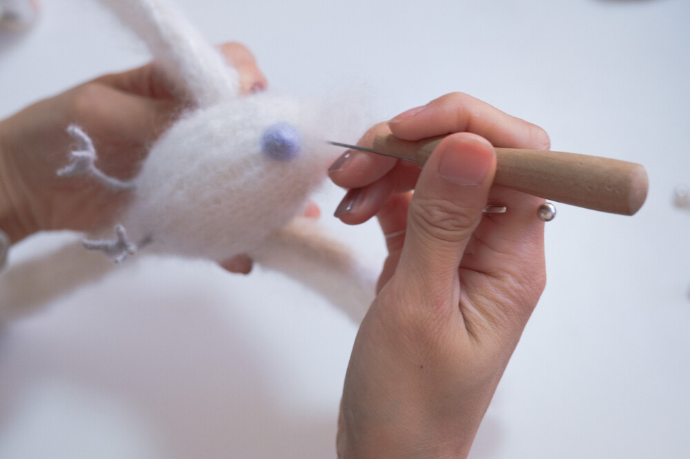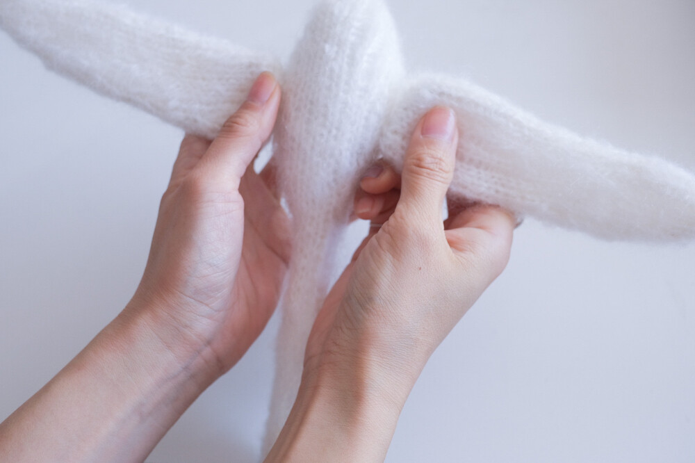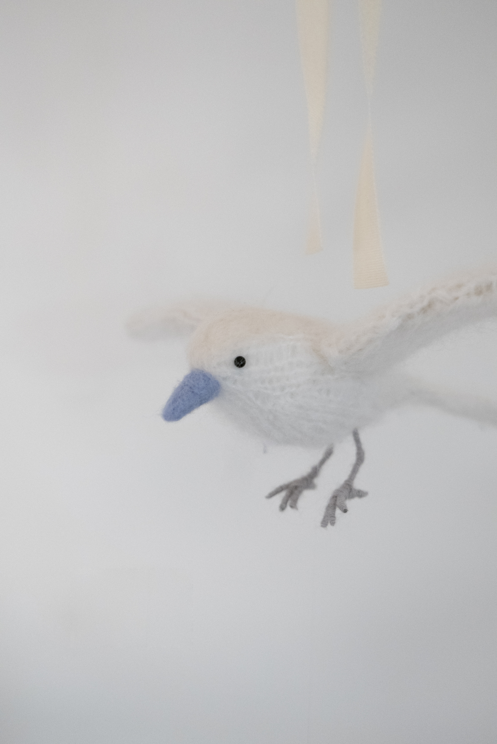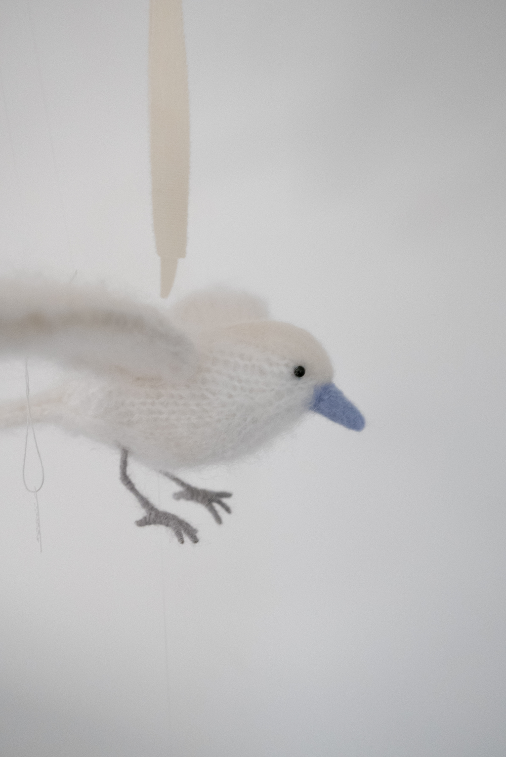 S : 포에지의 시어에서 받은 평화롭고 동화적인 느낌을, 저만이 담아낼 수 있는 시각적인 언어로 담아내고 싶었습니다. 제가 한 수많은 작업 중 딱 하나, 다른 작가들이 쉽게 시도할 수 없는 작업을 꼽으라면 아무래도 새 작업이 아닐까 싶습니다. 새 작업에는 제 작업의 특징이 종합적으로 다 담겨 있어요. 저는 니팅 전문가도, 펠트 전문가도 그렇다고 조각가도 아니지만, 그렇기에 자유롭게 여러가지 기법과 재료를 활용하여 저만의 느낌을 낼 수 있다고 생각해요. 그렇기에 포에지의 감성을 담으면서도, 저만 할 수 있는 것을 작고 하얀 새로 표현해 보고 싶었어요.