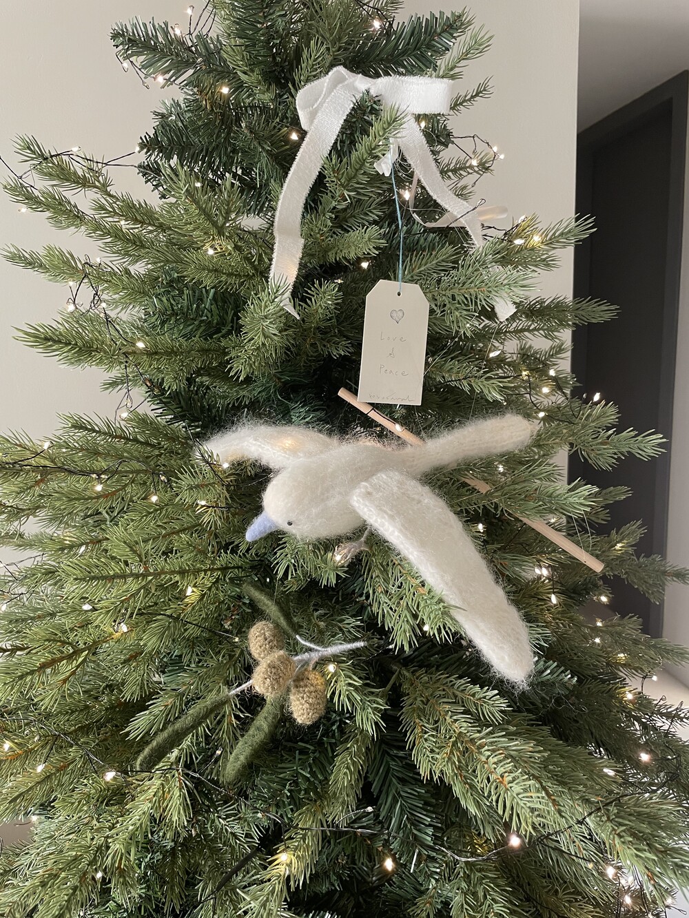 "평화가 우리에게 고요하게 주어지는 것이라면, 사랑은 새의 힘찬 날개짓처럼 능동적으로 이루어가는 것이라고 생각합니다. 그래서 올리브 가지를 아래로 당기면 새가 날개짓을 할 수 있게 만들었습니다. 사랑이라는 것은 애써 만들어가는 마음이라는 것을 잊지 않으면 좋겠습니다." _안신영 작가와의 인터뷰 中