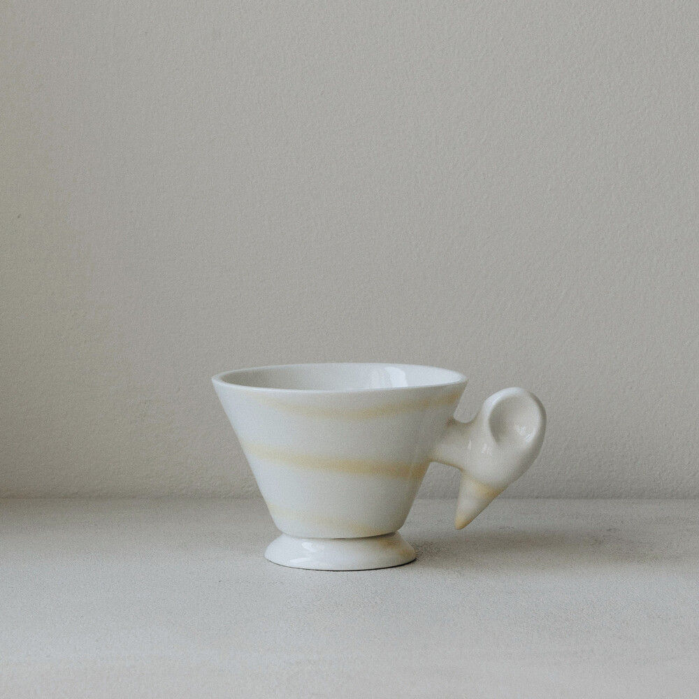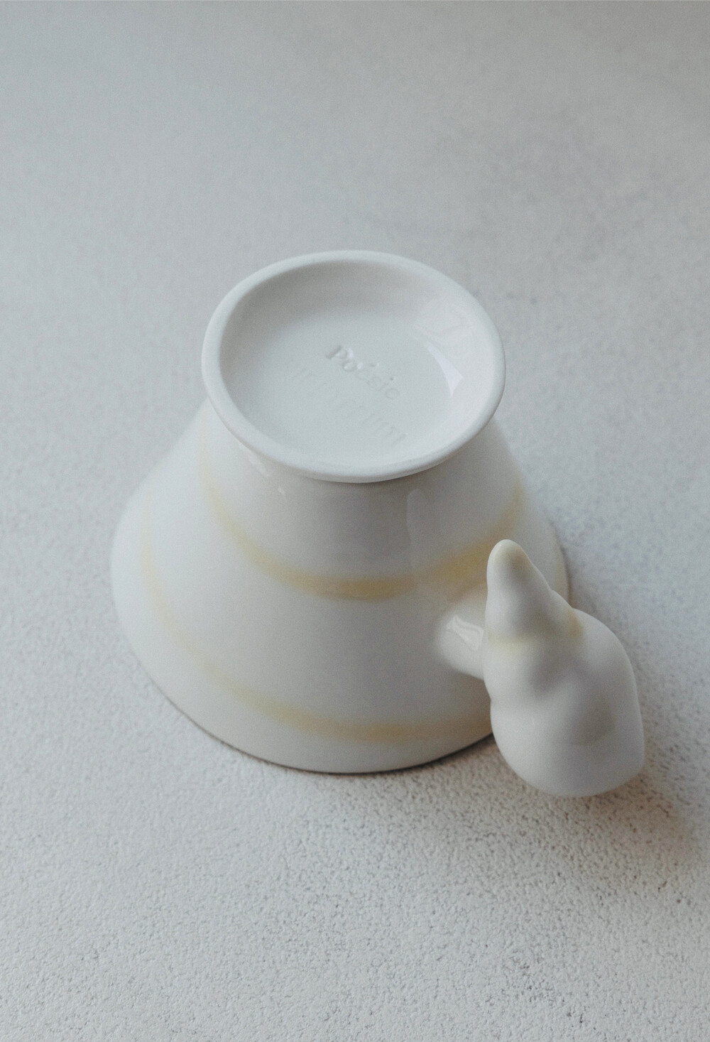 고둥 모양의 귀여운 손잡이가 미소를 짓게 하는 크림 쉘 컵입니다. 김소라 작가가 이끄는 나이트프루티는 자연의 소재를 다양한 형상의 기물로 조화롭게 풀어냅니다. 흙을 기반으로 한 재료를 고온의 열에서 소성했을 때 발현되는 우연한 효과에 집중해 특유의 세련되고 리듬감 있는 작업을 이어나가는 김소라 작가. 작가는 나이트프루티의 시그니처 컬렉션인 쉘컵 시리즈를 포에지만을 위한 컬러, 기법으로 작업했습니다. 우유 거품처럼 부드러운 웨이브가 입혀진 쉘 컵으로 무료한 시간에 경쾌하고 낭만적인 파도를 일으켜보시기 바랍니다.