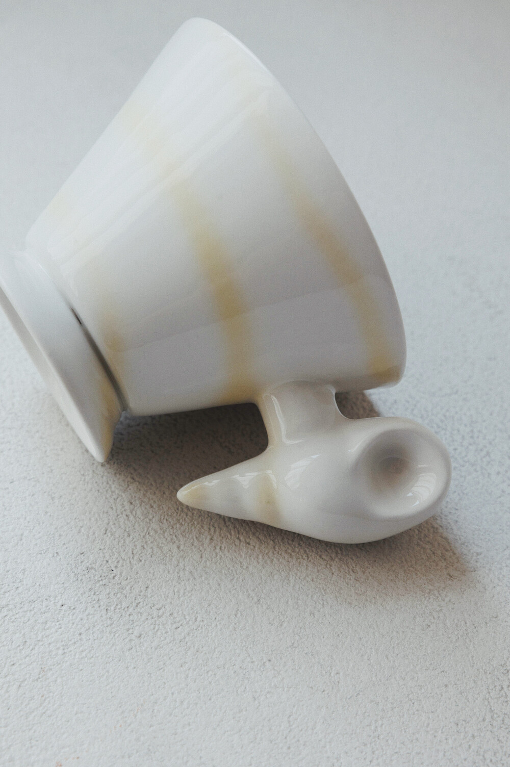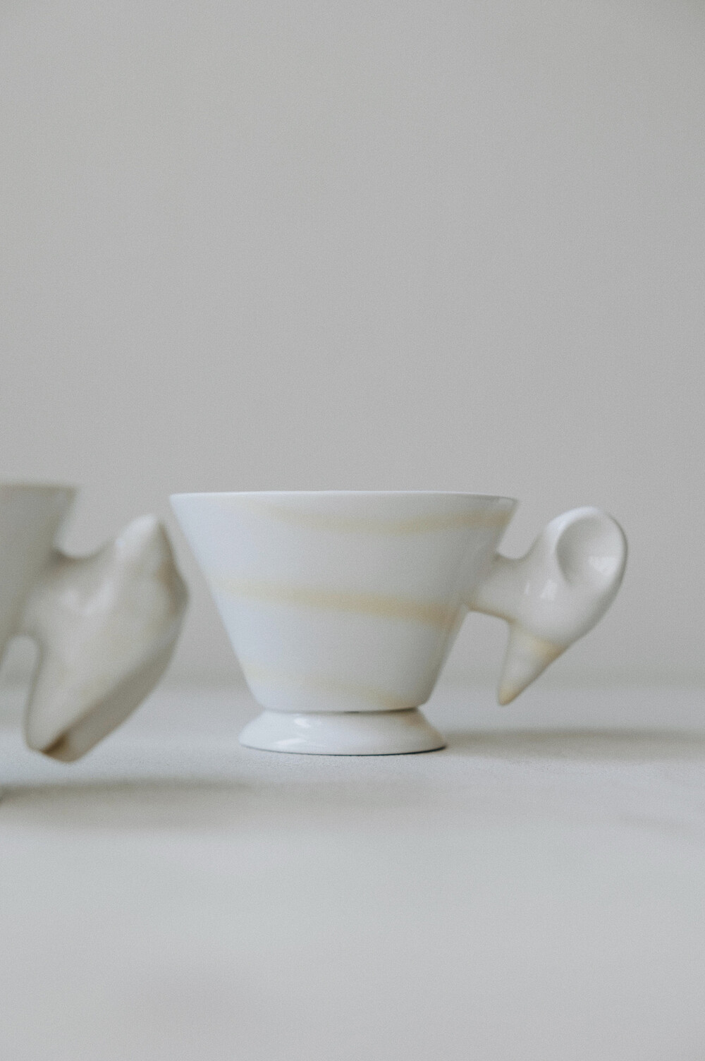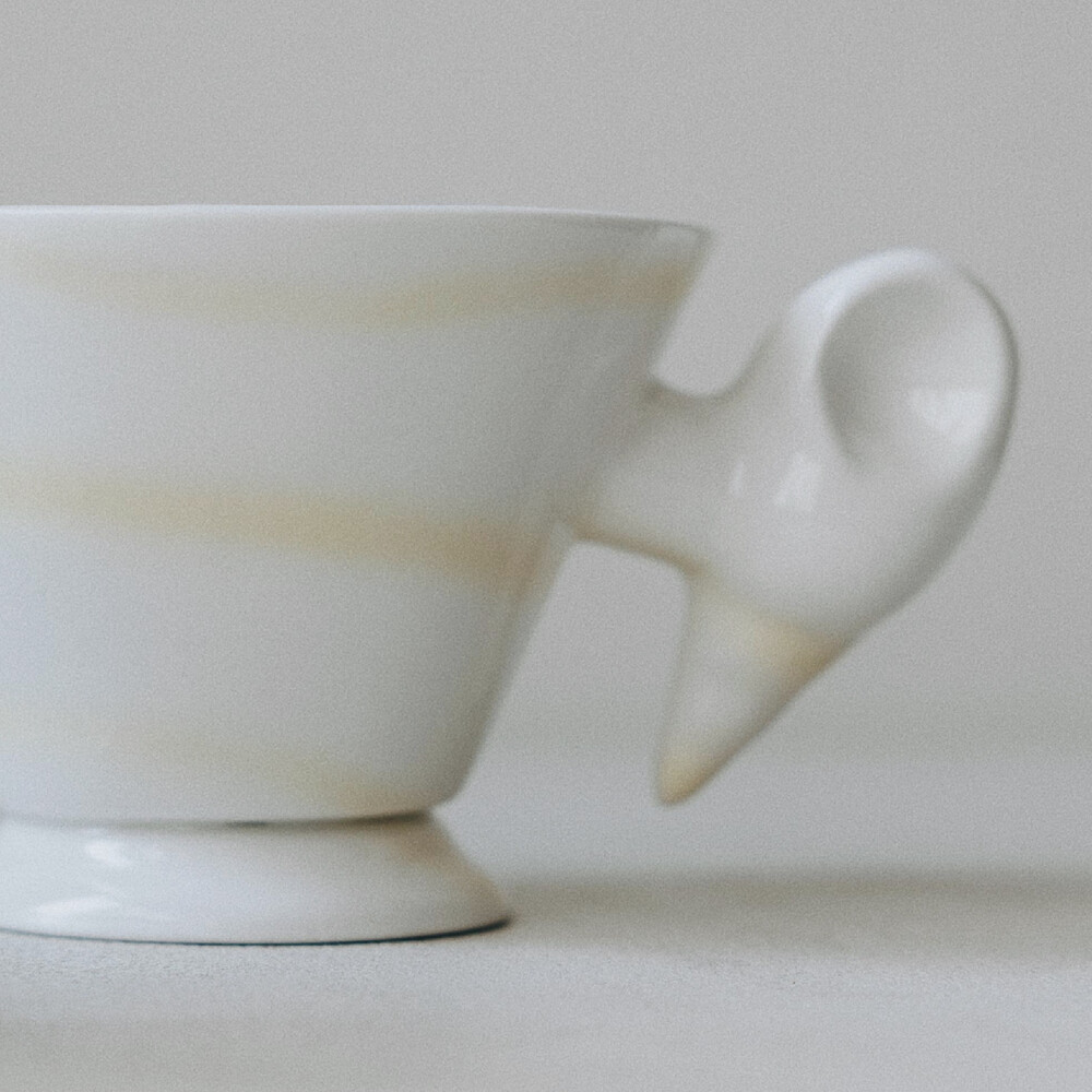 S : 작고 입체적인 쉘 손잡이를 매단 컵을 제작했습니다. 부드러운 우유 거품이 올라간 듯한 '크림', 고요한 해변을 연상시키는 '보네르', 깊고 우아한 차콜 컬러가 아름다운 '밀키웨이' 쉘 컵입니다. 물레와 핸드빌딩, 캐스팅을 병행해 작업합니다.